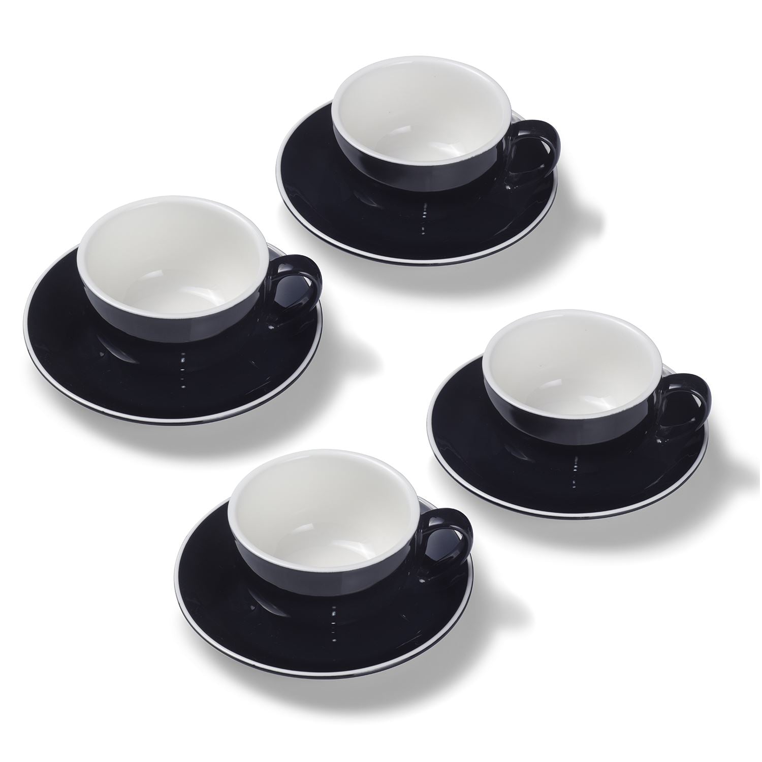 Terra Home 4er Milchkaffeetassen-Set, Schwarz glossy