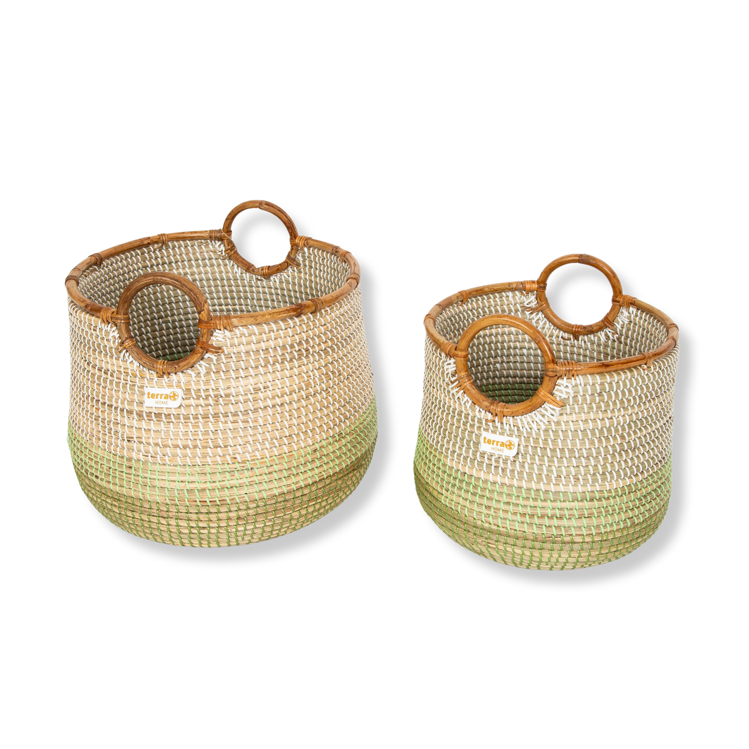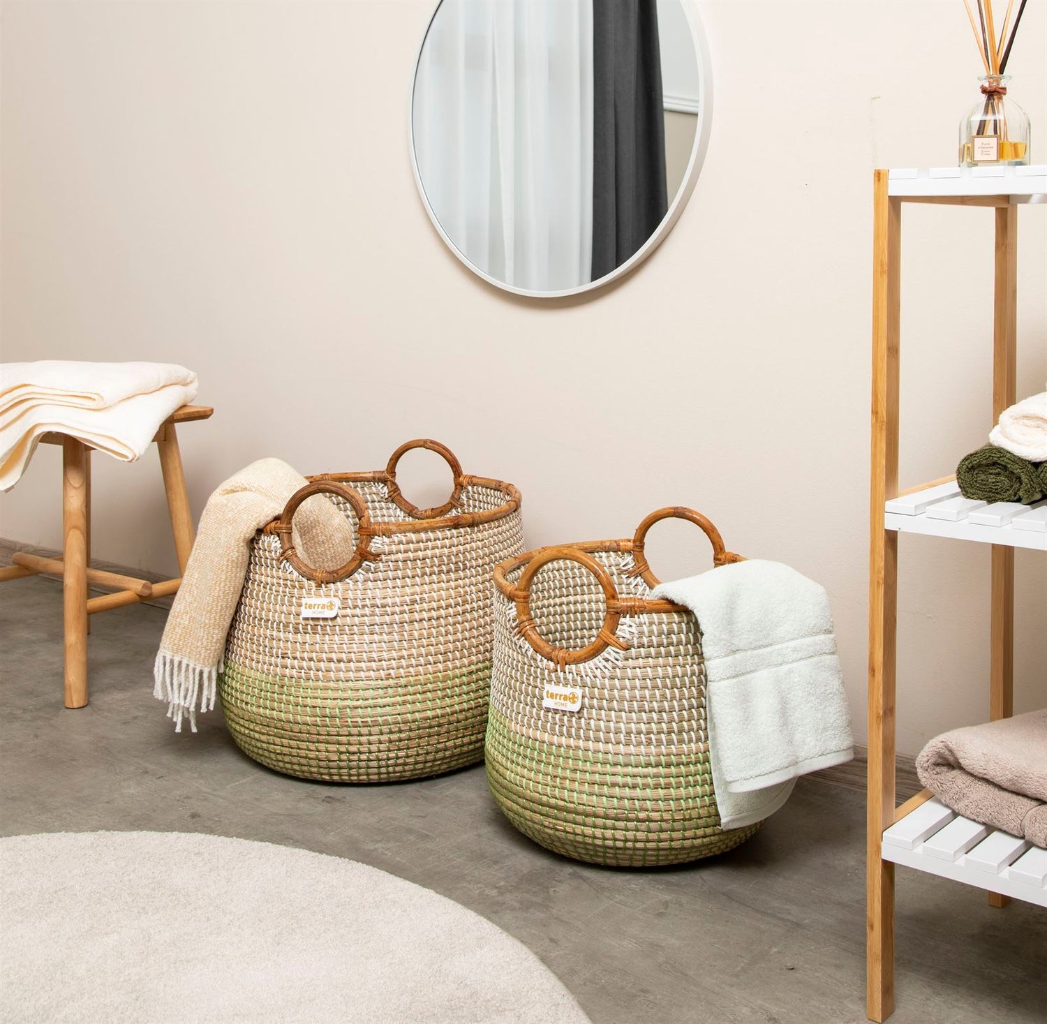 Terra Home Seegras Korbset Rattan Ø42 und Ø 34 grün weiß