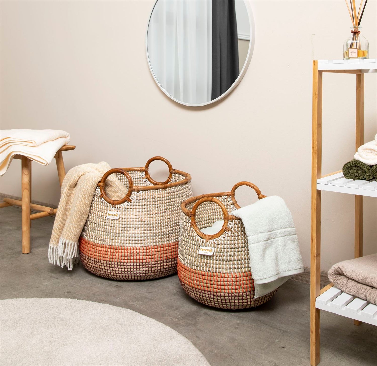 Terra Home Seegras Korbset Rattan Ø42 und Ø 34 rot orange weiß ist auf Lager und wird versandt, sobald es wieder verfügbar ist