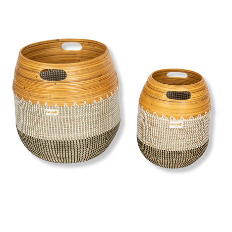 Terra Home Korb Set Seegras Bambus Ø35 und Ø20 schwarz weiß natur