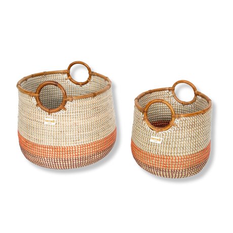 Terra Home Seegras Korbset Rattan Ø42 und Ø 34 rot orange weiß