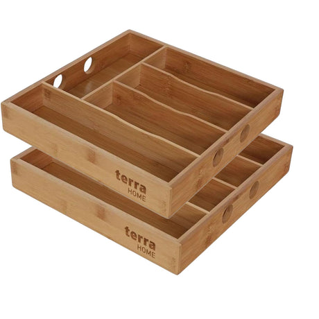 Terra Home 2 x Besteckkasten 5 Schublade Geschirrkasten Bambus braun Set