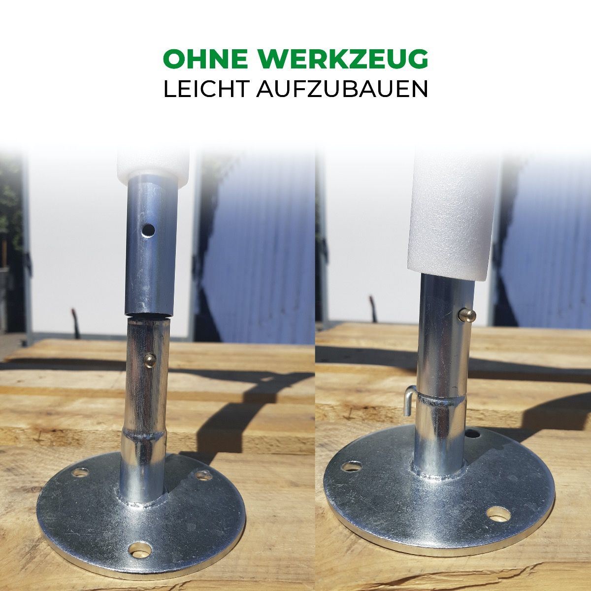 Dieses Modell bietet 240 Zentimeter Durchmesser Platz. Seine Firsthöhe von zwei Metern ermöglicht es Ihnen, kleinere bis mittlere Kübelpflanzen in ihm zu überwintern. Die UV-beständige Gitterfolie ist lichtdurchlässig. Über die Fensteröffnung kann man mühelos für die erforderliche Luftzufuhr sorgen. Auch das Gießen ist im Nu erledigt. Mühevolles Umquartieren von Kübelpflanzen entfällt und die Pflanzen werden nicht der Strapaze eines Standortwechsels mit veränderten Lichtverhältnissen ausgesetzt.