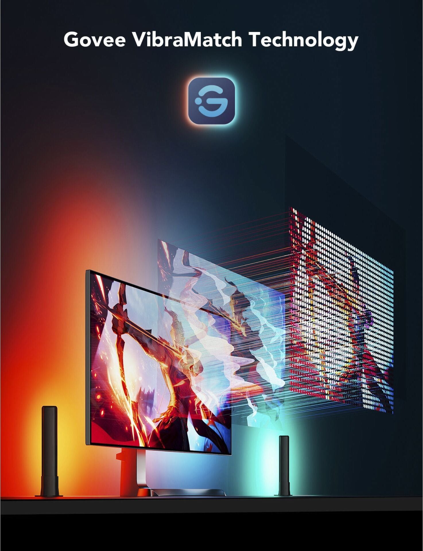 Verbessern Sie Ihr visuelles Erlebnis am PC mit dem Govee PC Monitor Pro Kit. Dieses intelligente Lichtsystem synchronisiert sich in Echtzeit mit den Farben auf Ihrem Bildschirm, um eine tiefe, immersive Beleuchtung zu schaffen, die über die Grenzen Ihres Monitors hinausgeht.