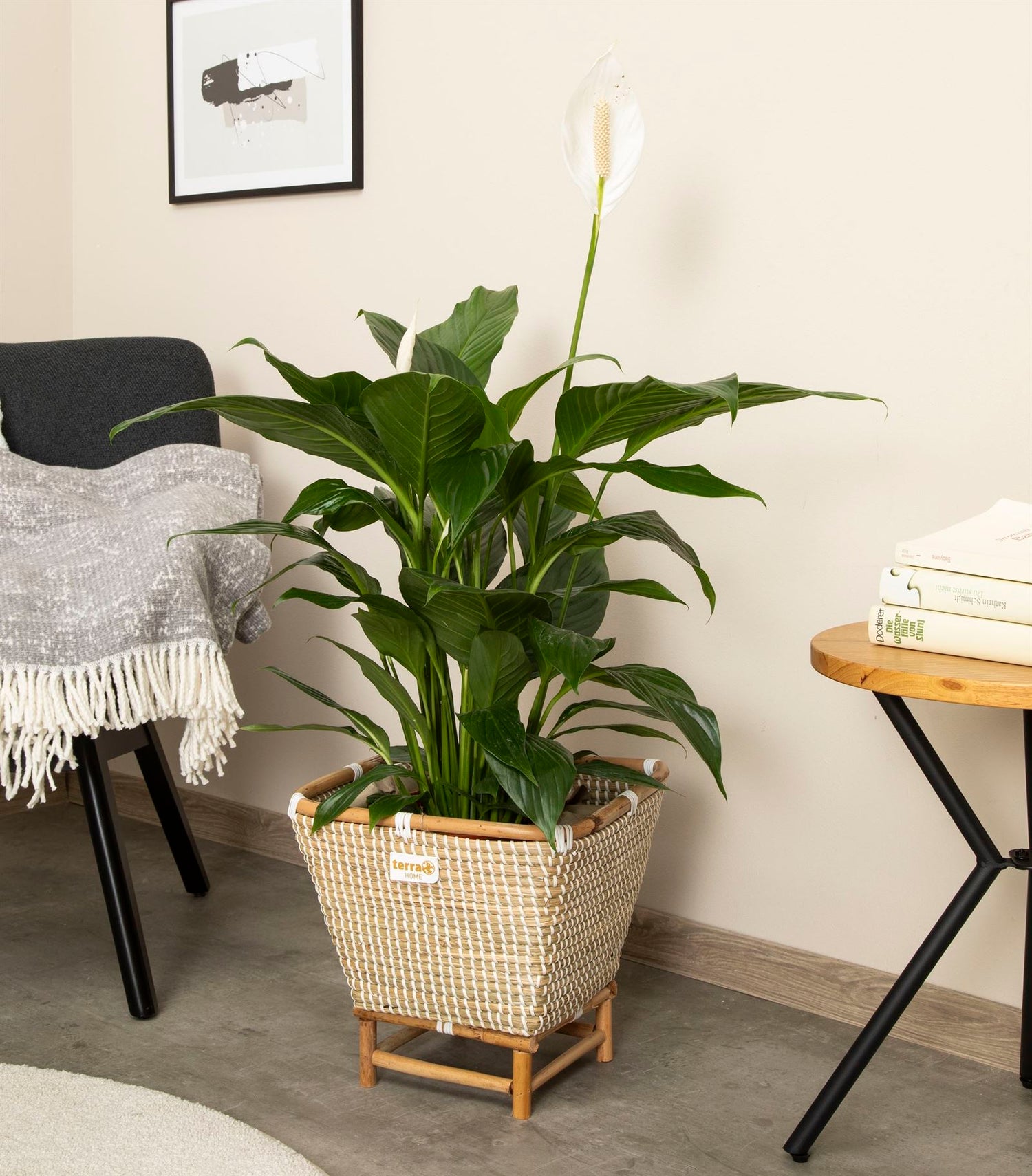 Die charmante Farbkombination aus naturbelassenem Seegras mit weißen Strings bringt eine frische und zugleich beruhigende Atmosphäre in Ihre Wohnräume. Der Pflanzenübertopf ist auf stabilen Holzbeinen montiert, die nicht nur für eine angenehme Höhe sorgen, sondern auch das moderne Design abrunden. Dieser Übertopf ist eine Bereicherung für jedes Zuhause und insbesondere für den Indoor-Bereich geeignet.