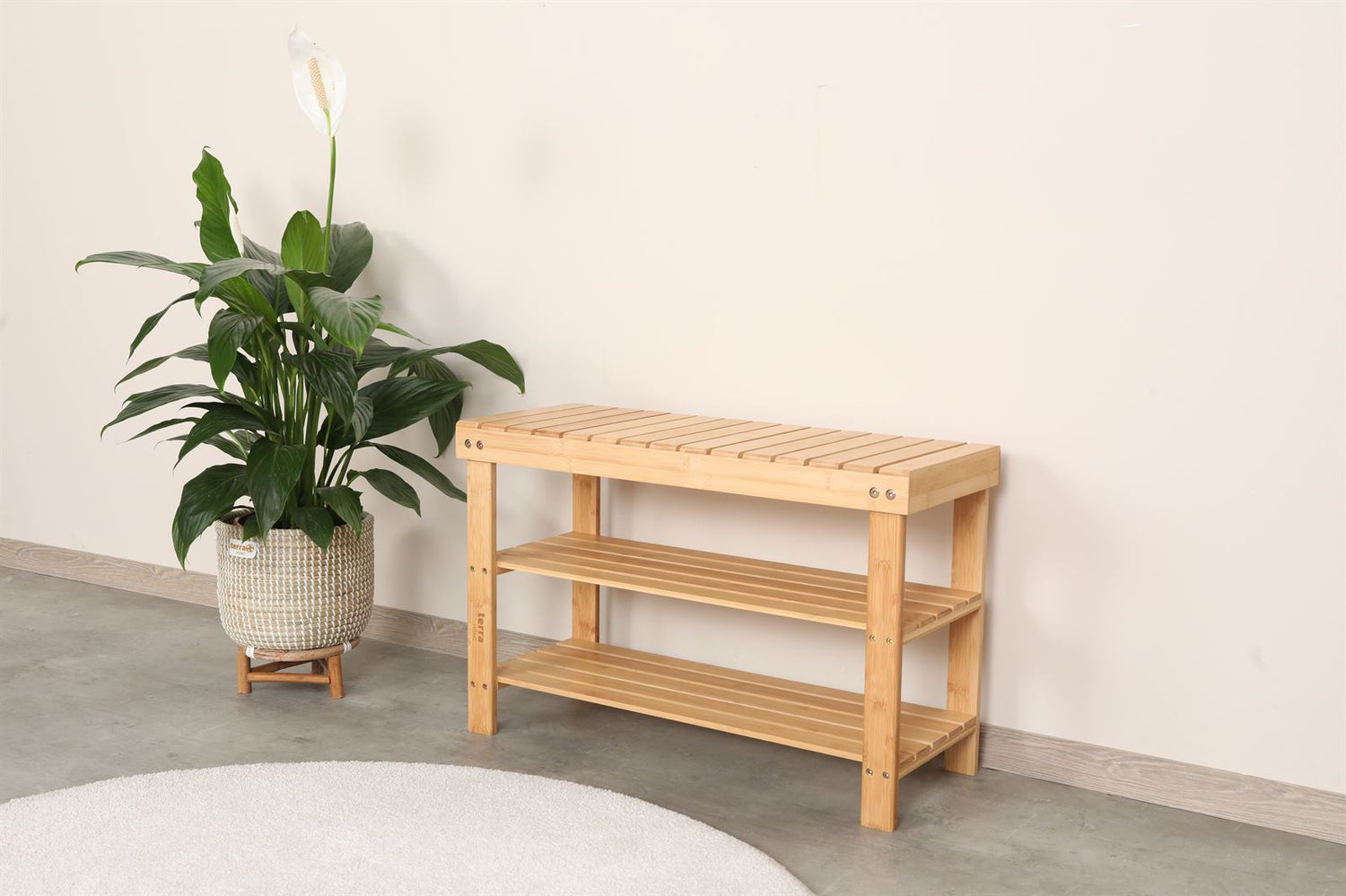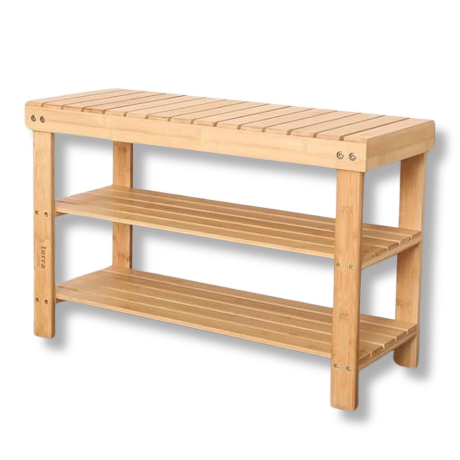 Terra Home Schuhregal Schuhbank Sitzbank Badregal Bambus Garderobenbank Bambusregal