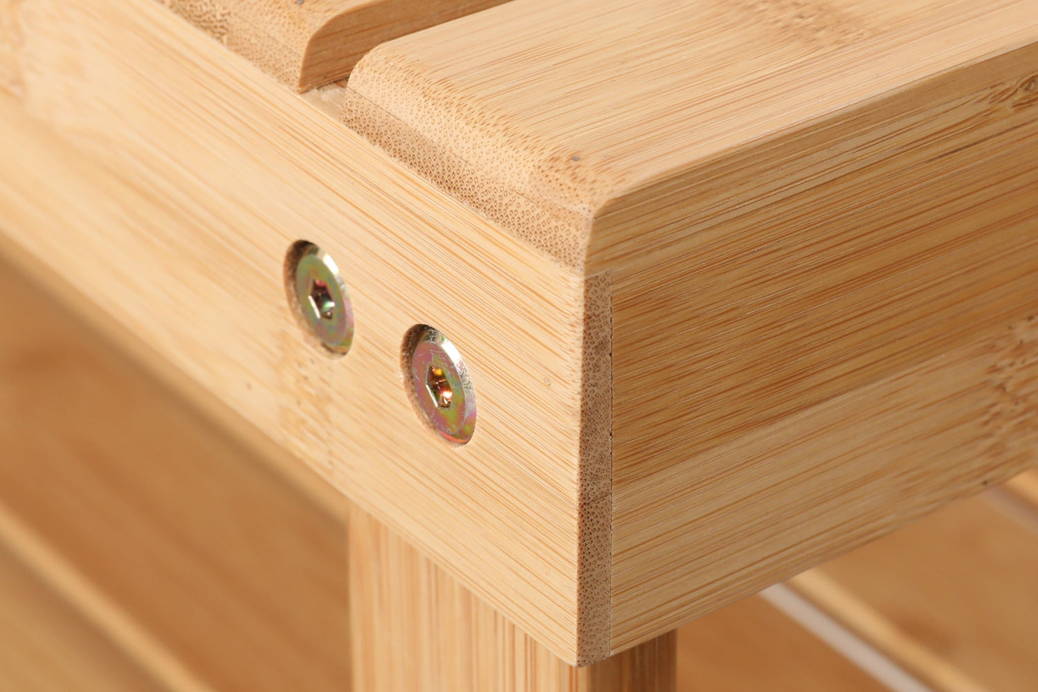 Die Holzelemente sind aus stabilem Bambus-Holz und die Schrauben aus gehärtetem Metall gefertigt. Dies sorgt dafür, dass das