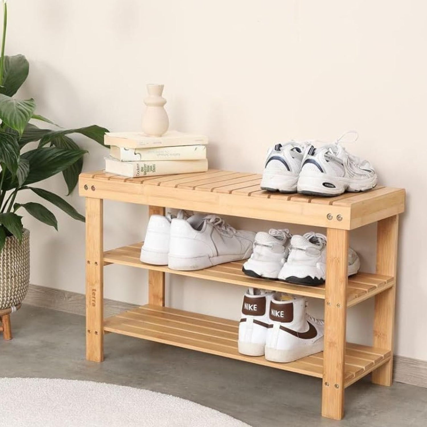 Terra Home Schuhregal Schuhbank Sitzbank Badregal Bambus Garderobenbank Bambusregal ist auf Lager und wird versandt, sobald es wieder verfügbar ist